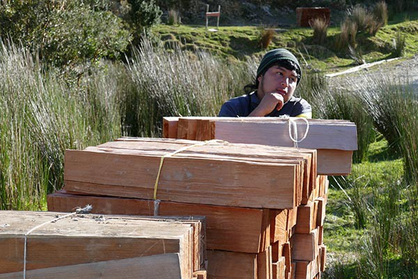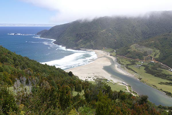 En route pour les côtes sauvages du Pacifique ! Franchissement de la cordillera de la costa et de plusieurs baies. Bateau sur le rio, découverte de l’environnement, logement chez l’habitant, au bord de l’océan, adossé aux rochers. La communauté vit de la récupération de bois d’alerce et de son artisanat.